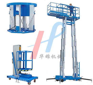 鋁合金升降機大致分為單桅升降機、雙桅升降機、三桅升降機和多桅升降機。鋁合金升降機采用高強度優質鋁合金材料,具有造型美觀、體積小、重量輕、運轉靈活,推行方便,升降平穩、安全可靠等優點,它輕盈的外觀能在極小的空間內發揮最高的舉升能力。廣泛用于工廠、賓館、餐廳、車站、影劇院、展覽館等場所,是保養機具、油漆裝修、調換燈具、電器、清潔保養等用途的最佳安全伴侶。